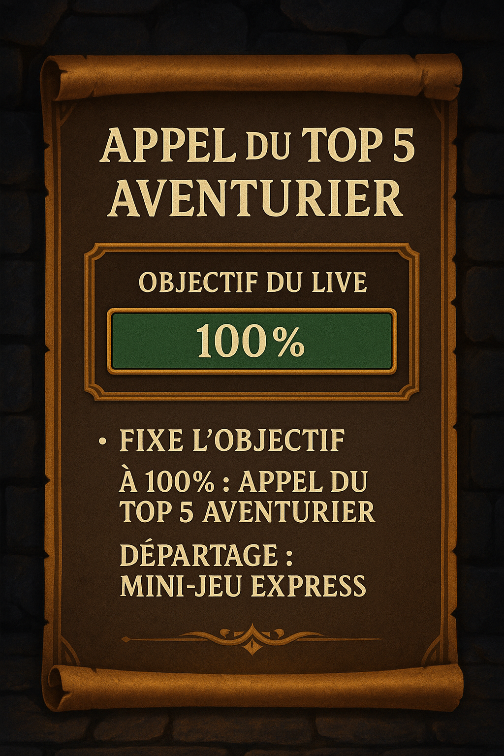 - Annonce en amont : surveillez les objectifs affichés et préparez-vous pour l’Appel du Top 5.