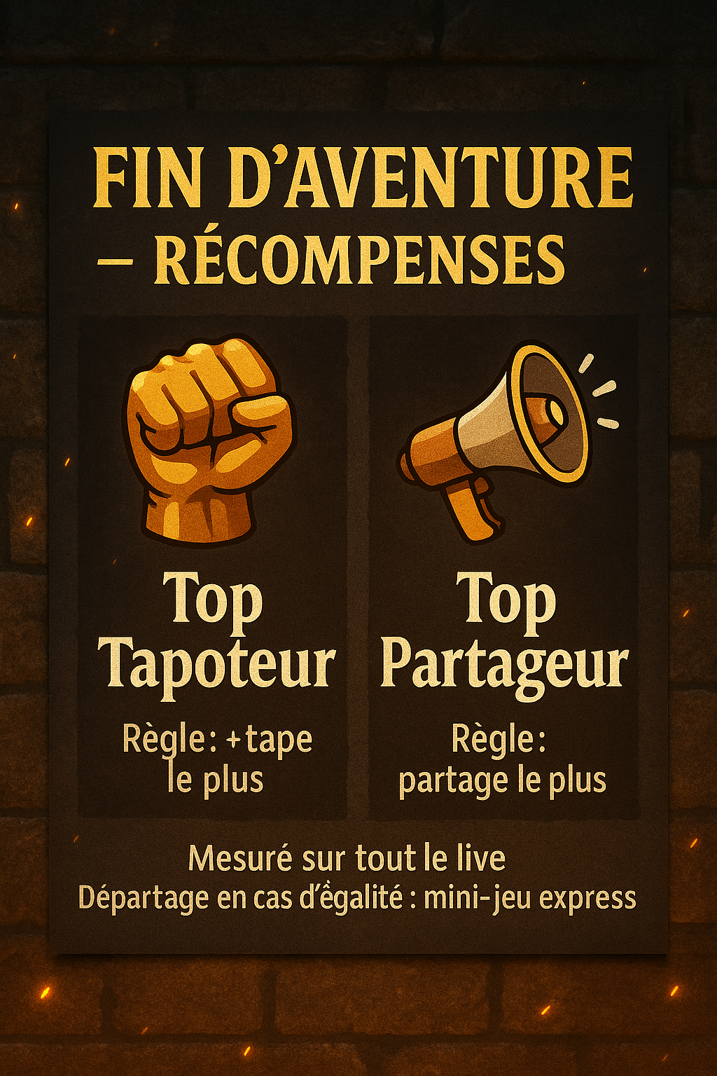 - Critère : l’aventurier(ère) qui a le plus partagé le live.